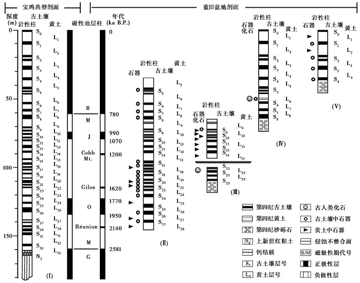 For example, in 1984, An Zhisheng et al. for the first time used the method of loess-paleosol standard profile correlation in Luochuan and the new paleomagnetic dating technology to conduct detailed field investigation and stratigraphic division of Gongwangling and Chenjiawo fossil sites in Lantian, and dated their ages of 0.65~1.15 Ma B.P. Since the beginning of this century, the research team led by Lu Huayu and Wang Shejiang has discovered and studied a large number of Palaeolithic sites, which contain loess-paleosol strata and related river terrace deposits, in the intermountain basins and valley terraces on both sides of the East Qinling Mountains(mainly in the south). The age span is about 1.27~0.01 Ma B.P., which is equivalent to the L15~L1 horizon.